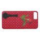 rose rouge dans vase noir sur arrière - plan rouge avec pois blancs