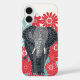 Ephant et fleurs folksy, dessinés à l'origine à l'encre. Disponible en bleu, orange, rose et rouge.