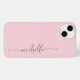 Girly Simple Blush Pink Elegant Gold Monogramme Nom Signature Script Personnalisé coque iphone. Ce design minimaliste avec votre prénom dans un joli style écrit à la main en noir et blanc signature typographie script en couleur or sur bébé rose ou rose pâle arrière - plan couleur. Si facile à customiser. Grand cadeau féminin élégant pour l’anniversaire, la fête de la mère, la fête de 16 ans, pour la fête de remise de diplômes et C’est pour la fille qui aime des choses uniques et élégantes.