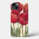 © Carol Rowan / Wild Apple. A bunch of ruby colored tulips with leaves and stems. The Image has a plain white background.
