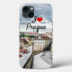 Peinture de rue étroite à Prague, République tchèque. Rue avec belle vue sur le centre historique de Prague