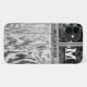 Ce boîtier téléphonique est muni d'une photo en noir et blanc de bois et de fenêtres en détresse, ainsi que d'une initiale et d'un message personnalisables.