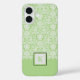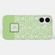 Cette coque de téléphone à motif damassé avec monogramme sera assortie à tout et ne sera jamais démodée. Créée dans des tons de vert sauge et de noir accentués. Votre choix de styles de téléphone. Personnalisez simplement le texte du monogramme dans l'éditeur Zazzle facile à utiliser. Voir les articles coordonnés dans cette même collection.
