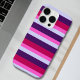 Un coque iPhone 16 Pro tendance avec un motif à rayures rose et violet. Élégant et moderne, cet accessoire personnalisé apporte une touche unique tout en gardant votre appareil protégé.