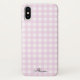 Il présente un design en vichy rose pastel. Personnalisez avec un nom.