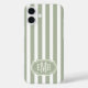 Coques Case-Mate iPhone Sage Green and White Monogrammed Stripes