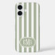 Coques Case-Mate iPhone Sage Green and White Monogrammed Stripes