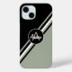 Sage Green combiné avec le coque smartphone à bandes diagonales noir et blanc. Entièrement personnalisé avec votre nom et votre monogramme