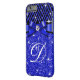Coques Case-Mate iPhone Saphir du monogramme | de diamant de Chevron Bling