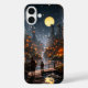 Cette boîte téléphonique a une scène de lune artistique sur elle.