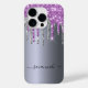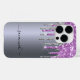 Un coque élégant, féminin et glamour. Faux argent et violet fausse parties scintillant goutte à goutte, la peinture goutte à goutte. Chic foncé faux métal d'apparence arrière - plan. Personnalisez et ajoutez votre nom. Le nom est écrit avec un script de style moderne écrit à la main. Lettres noires. Pour que les swashes ne suppriment que le nom de l'échantillon, laissez les espaces ou les émoticônes devant et après le nom