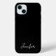 Ajoutez une touche personnelle élégante à votre téléphone avec cette coque iPhone 15 Plus au script de signature de nom personnalisé minimaliste noir. Le fond noir épuré associé à un script élégant de style écriture manuscrite crée un look moderne et sophistiqué. Personnalisez-le avec votre nom ou un texte personnalisé pour en faire un accessoire élégant du quotidien ou un cadeau personnalisé attentionné. Parfait pour tous ceux qui aiment les designs simples, élégants et modernes.