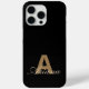 Coque iphone Monogrammé moderne Black Gold Feminine Script. Personnalisez facilement ce boîtier de téléphone moderne et élégant avec votre monogramme et votre nom personnalisés.