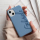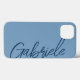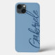 Ce coque iphone est décoré d'un arrière - plan bleu avec un script bleu marine moderne et élégant. Personnalisez-le avec votre nom ou vos initiales, un étui téléphonique moderne et élégant.