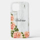 Vintage look blanc lave bois avec des fleurs d'aquarelle et un nom de votre choix. Choisissez l'intérieur de ce carnet. Magnifique étui téléphonique rustique personnalisé.