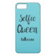 Ce coque cellulaire est idéal pour quelqu'un qui aime prendre des selfies. Les mots "Selfie Queen" sont sur un arrière - plan bleu turquoise turquoise. Customisez de personnaliser avec un nom ou un monogramme sous les mots "Selfie Queen". Amusant et mignon, ce coque fera un grand cadeau pour vous-même ou pour quelqu'un d'autre. D'autres couleurs arrière - plans sont disponibles.
