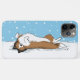 Le coque iphone de Sheltie Lover. Dessin mignon d'un Shetland Sheepdog roulant dans la neige avec des flocons de neige descendant. Visitez le Doodle World de Jenn pour encore plus de produits avec ce design de chien heureux et de nombreux cadeaux de vacances pour chiens de races.