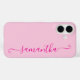 Une signature moderne mignonne de petite ceinture enroulée avec queues décoratives contre un arrière - plan de couleur solide rose clair personnalisable. Vous pouvez modifier la couleur de la police et laisser tomber l'ombre. Conservez les symboles au début et à la fin de votre nom pour créer les swashes.