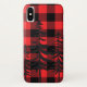 Fun rustique rouge et noir plaid motif avec silhouette à feuillage persistant.