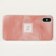 Un design simple et subtil en marbre à peine Il iPhone X Coque en rose corail avec un badge carré blanc moderne que vous pouvez personnaliser en ajoutant votre monogrammed initial à. Cela fait partie de la collection de monogrammes en marbre subtil Dahlia en fleurs.