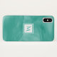 Un design simple et subtil en marbre à peine Il iPhone X Coque en vert turquoise avec un badge moderne blanc carré que vous pouvez personnaliser en ajoutant votre monogrammed initial à. Il fait partie de la collection Arcadia Subtle Marble Monogram.