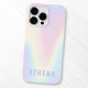 Pastel coque iphone tendance avec un motif arc-en-ciel pastel doux et son nom en violet clair.