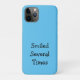 Le Smiled plusieurs fois texte sur un étui téléphonique bleu. Tailles pour plusieurs téléphones. C'est dur et à peine là.