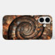 Cette oeuvre d'art numérique présente une spirale hypnotique formée par des **tuiles métalliques** complexes dans des tons de terre **bronze**, **cuivre** et **charbon de bois**. La spirale conduit l'oeil vers un point central de disparition, créant une puissante illusion de profondeur et d'infini. Les carreaux sont texturés pour imiter les matériaux réels, donnant une qualité tactile, presque tangible à la forme par ailleurs surréaliste. Le style artistique peut être classé comme **optique et surréaliste abstrait**, mêlant précision numérique et esthétique organique et rustique. Il s’agit d’une représentation visuelle de cycles, de temps ou de spirales de pensée, attirant le spectateur dans un espace méditatif ou philosophique.