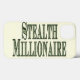 Texte vert "STEALTH MILLIONAIRE" dans une police ressemblant à celles trouvées sur la monnaie. On ne sait jamais qui pourrait être millionnaire. Ils ne vivent pas tous grands avec des vêtements tape-à-l'oeil, la voiture de luxe, ou une grande maison. Ils n'annoncent pas qu'ils sont bien lotis. Ce sont des millionnaires furtifs. Annoncez le fait et vous n'êtes pas vraiment un millionnaire furtif, mais si personne ne vous croit votre secret est en sécurité ; vous êtes peut-être caché à la vue de tous. Pour les millionnaires furtifs et ceux qui y travaillent.