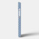 Stick fille avec cheveux blonds et baskets bleus sur un motif à pois bleu.