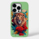 Style été Lion, floral iPhone 14 Pro Coque, parfait pour votre téléphone, changer la couleur de l'arrière - plan si vous voulez