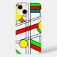 Ce boîtier téléphonique a un design moderne du milieu du siècle d'un look en vitrail avec des lignes noires et des cercles remplis de couleurs primaires et secondaires.