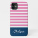 Coques Case-Mate iPhone Stylé rose rayures Nom bleu