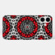 Boîtier de téléphone dans un Southwestern / Aztec inspiré batik design dans un cadran solaire / mandala motif - tomate riche rouge, noir et blanc, accentué avec gris argenté / gris