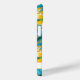 Customize this colorful modern sunflowers on teal painting iPhone 15 case with your your name in a trendy modern CAP font in teal on white. It's so beautiful and happy!