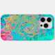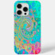 Ce boîtier de téléphone couleur Cool iPhone 15 Pro Max dispose d'une Super peinture rétro turquoise bleu et arc-en-ciel bleu et bleu liquide avec des accents vert Aquamarine, rouge, jaune et citron vert. Le résultat est un design coloré, super et abstrait que vous aimerez !