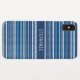 Ce boîtier téléphonique de Noël est décoré dans un style pull bleu et blanc rayé. Personnalisez-le avec un nom.