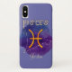 Illustration d'aquarelle bleu violet avec le signe zodiaque orange pour Pisces (poisson) et la constellation d'étoile correspondante en or sur un arrière - plan périwinkle (très peri). Ajoutez votre nom au coque iphone et faites-en le vôtre. N'hésitez pas à modifier la police, la taille de police et la couleur. Ce coque iphone fera aussi un merveilleux cadeau d'anniversaire pour un proche, un ami ou un collègue.