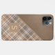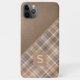 Tan contemporain, marron, beige, taupe, plaid écossais blanc crème en ivoire, et un arrière - plan motif à la texture en faux cuir. Avec la place de customiser ou de personnaliser avec un nom monogramme ou initial de votre choix. Belle couverture moderne et cool pour le brancheur tendance et amateur d'art branché, amoureux de motifs artistiques qui veut protéger leur téléphone de la poussière et de la saleté, de l'usure et de la déchirure. Cette conception est disponible pour les coques de téléphones cellulaires Apple iPhone 6, 7 et 8 Plus, 10 ou X, XR, XS, 11, 12, 13 Mini, 14, 15 Plus et Pro Max. Montrez votre style, regardez à la mode et sentez élégant avec un design unique sur un appareil mobile de votre choix.