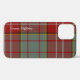 Élégant iPhone 12 cas mate boîtier téléphone réalisé dans le traditionnel tartan écossais rouge et gris plaid du clan Ogilvie. Le texte gris clair qui tourne verticalement, sur le côté gauche, est prêt à être personnalisé. Un moyen élégant et idéal de protéger votre téléphone intelligent, et de faire une idée cadeau formidable.