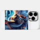 Un cheval noir qui fait rage lors d'une tempête d'éclair près de l'océan, imprimé sur des boîtiers de téléphone portable. Copyright (c) 2024