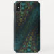 Un coque iphone d'art imaginaire et fractal en bleu foncé et vert avec une texture de tentacules de pieuvre.