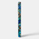 Cette vue en gros plan présente une texture unique avec une grille dorée entrelacée au-dessus d'une mosaïque vibrante d'aqua et de tons turquoises. Les gouttes de couleur liquide donnent une impression de profondeur, ressemblant à des pierres fluviales polies ou des gouttelettes d'eau capturées sous un filet fin. Le contraste élégant entre les lignes métalliques et les couleurs brillantes crée un visuel captivant.