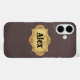 Une texture en cuir foncé est l'arrière - plan simple pour un badge vintage, de style grunge, personnalisé avec votre nom sur ce coque iphone.