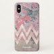 Un coque féminin magnifique avec des rayures zig-zag en chevron rose marbré sur un arrière - plan motif abstrait à texture rose et gris. Insérez votre nom, votre monogramme ou tout autre texte souhaité à la place du nom de l'exemple indiqué dans le modèle de conception. Si vous préférez le coque sans le nom, il suffit de supprimer le texte.