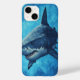 Fierce and Graceful Tiger Shark in a Dreamy Anime-Style Blue Ocean Scene iPhone Case