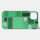 Ce boîtier téléphonique a une conception Bauhaus de rectangles formés de lignes grises remplies de différentes nuances de vert.