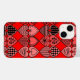 Ce boîtier de téléphone a un design de coeur de Valentin avec des hauts à des bas et des bas à des bas avec des graphiques à l'intérieur sur un champ de rouge.