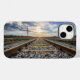 Une belle photo de voies ferrées qui s'éloigne au loin sur une photo parfaite jour orne ce joli boîtier téléphonique !