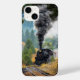 Locomotive numéro 19 image couleur d'un train à vapeur qui s'approche sur les voies de train qui clignote de la fumée grise de sa cheminée la voie est flanquée d'arbres de chaque côté